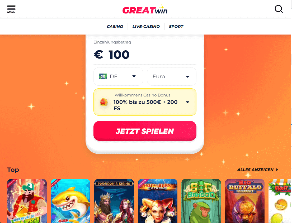 GreatWin Casino Test: bis zu 500 Euro Bonus und 200 Freispiele